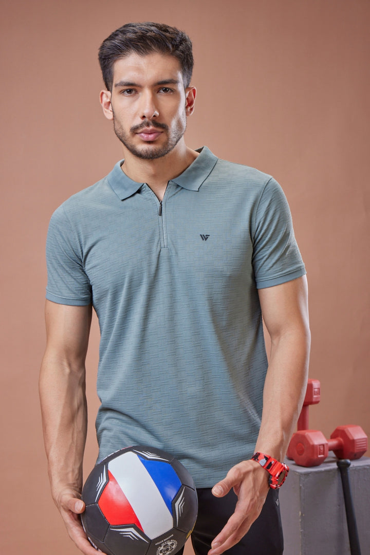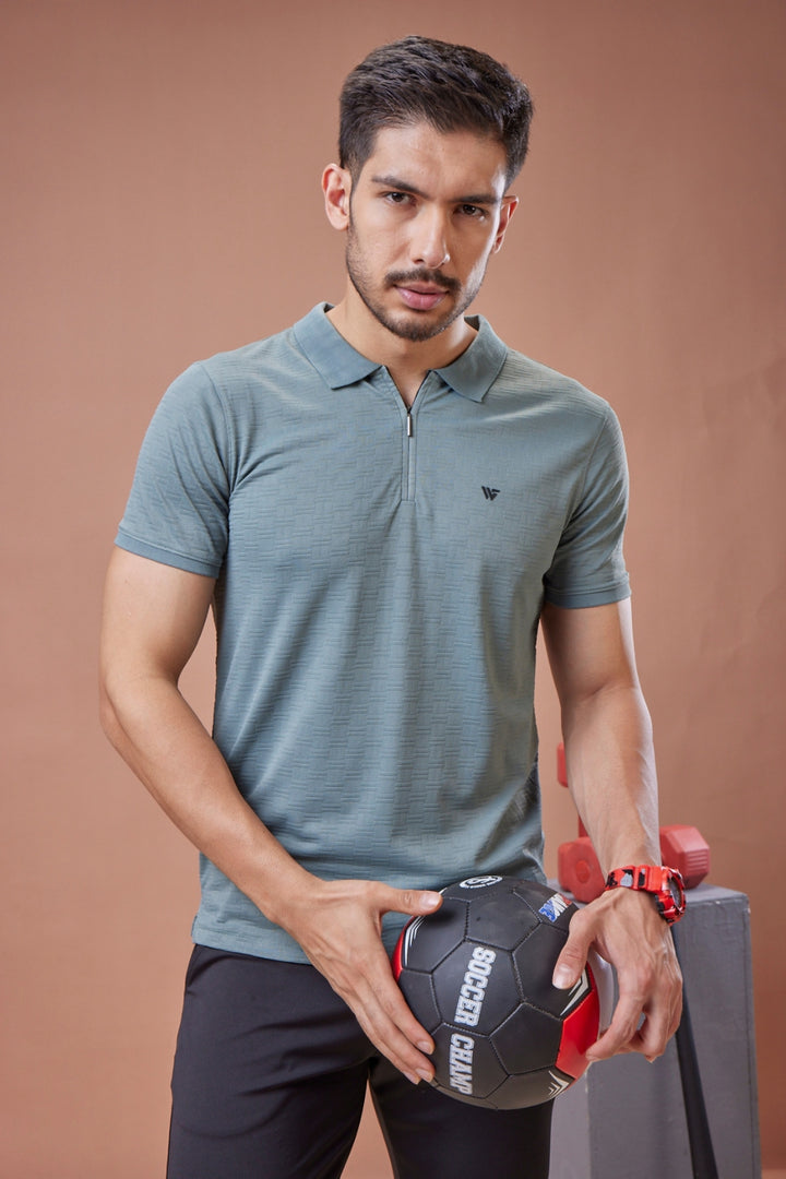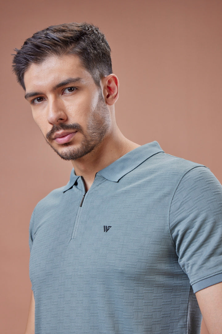 Elevate your everyday style with the Check Jacquard Textured Polo T-Shirt, tailored from premium jacquard fabric that combines comfort with sophistication. The subtle checkered texture woven into the fabric adds depth and refinement, while the sleek zip-up collar brings a modern edge to a timeless silhouette. Perfectly versatile, this polo is designed to keep you looking sharp from day to night.