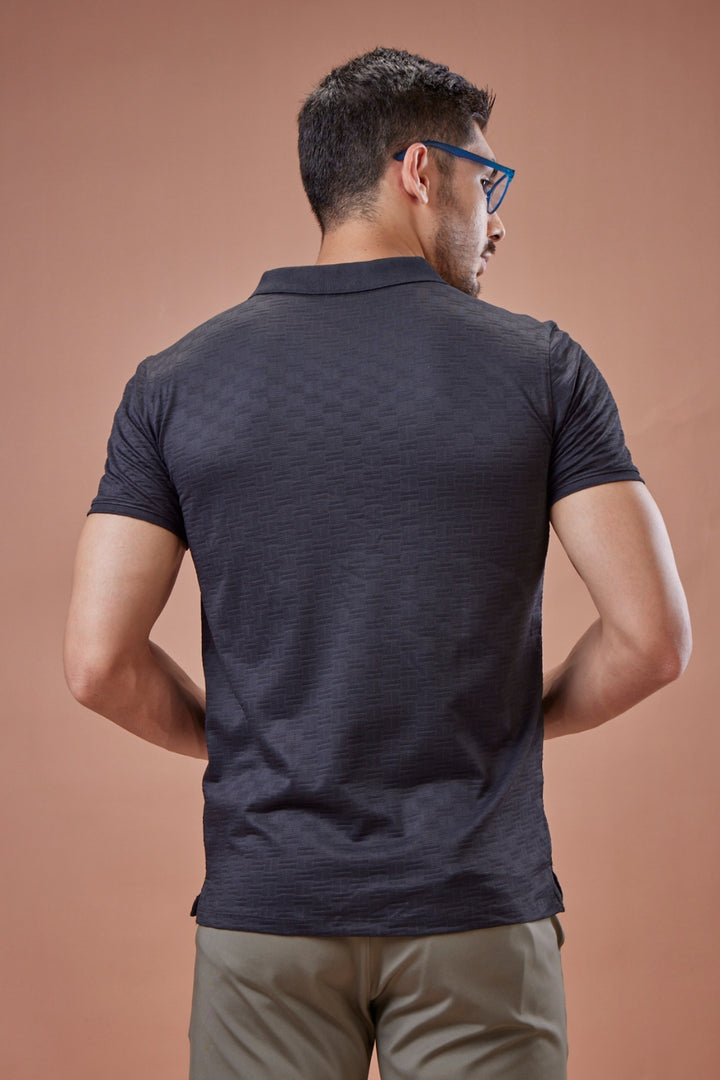 Check Jacquard Textured Polo T-Shirt – Premium Jacquard Fabric