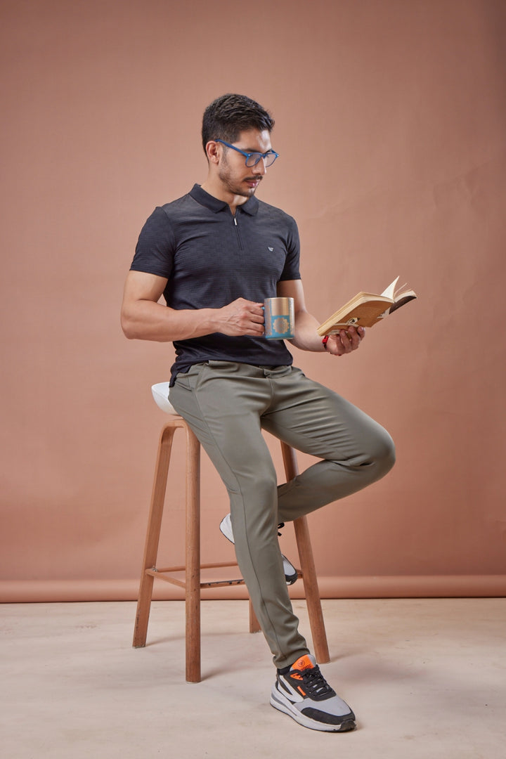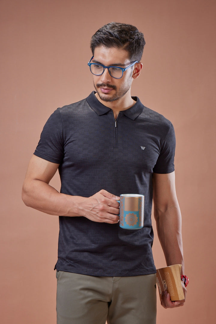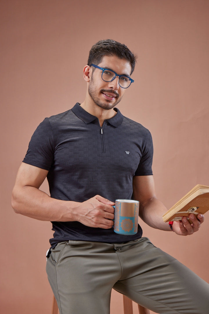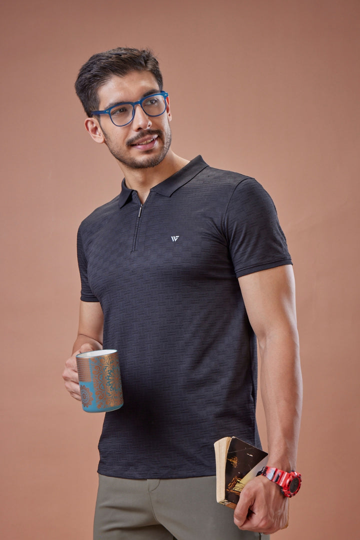 Elevate your everyday style with the Check Jacquard Textured Polo T-Shirt, tailored from premium jacquard fabric that combines comfort with sophistication. The subtle checkered texture woven into the fabric adds depth and refinement, while the sleek zip-up collar brings a modern edge to a timeless silhouette. Perfectly versatile, this polo is designed to keep you looking sharp from day to night.