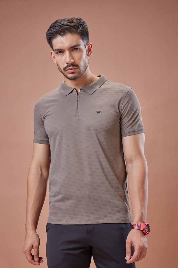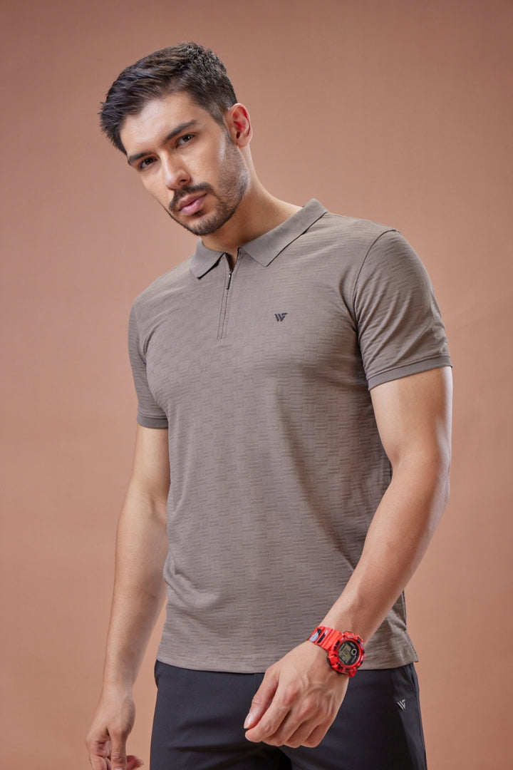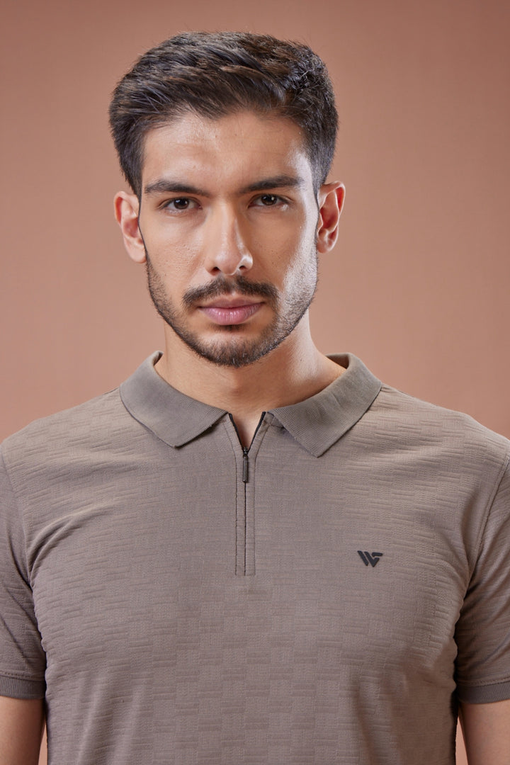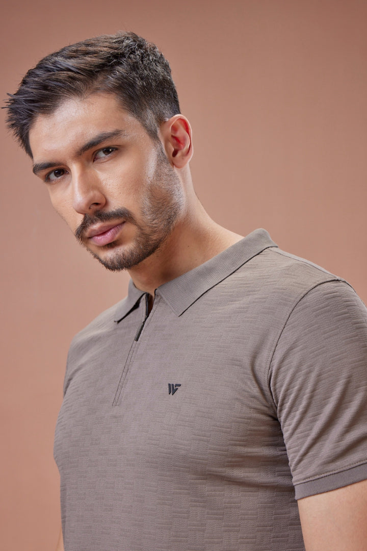 Elevate your everyday style with the Check Jacquard Textured Polo T-Shirt, tailored from premium jacquard fabric that combines comfort with sophistication. The subtle checkered texture woven into the fabric adds depth and refinement, while the sleek zip-up collar brings a modern edge to a timeless silhouette. Perfectly versatile, this polo is designed to keep you looking sharp from day to night.