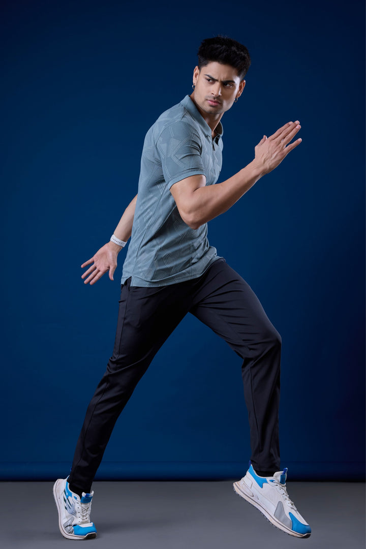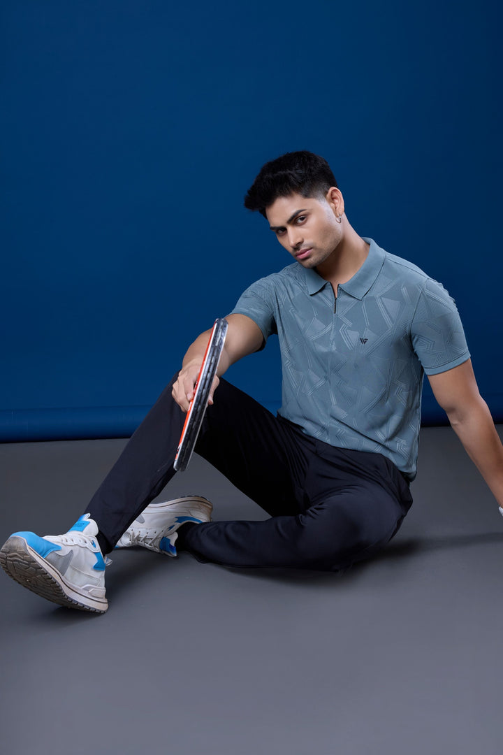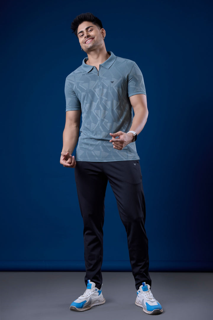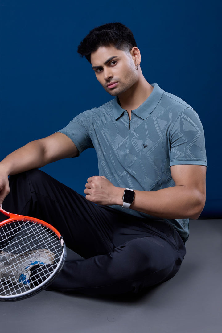 Step up your style with the Jacquard Graphic Zip Polo T-Shirt, where premium texture meets modern design.