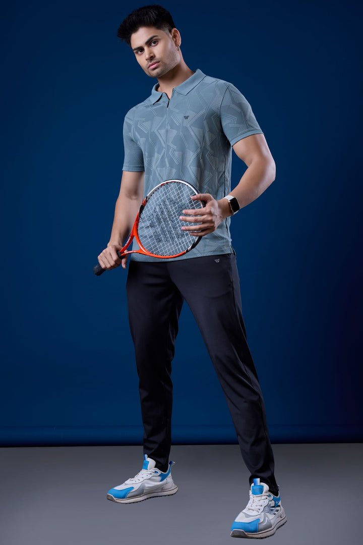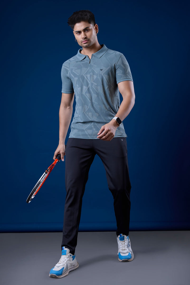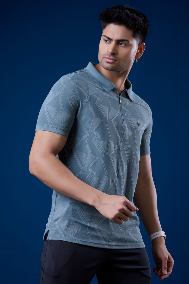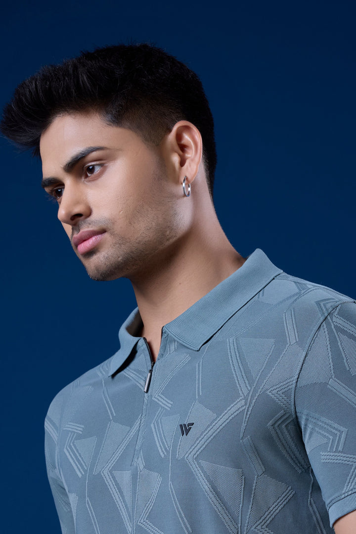 Jacquard Graphic Zip Polo T-Shirt with Premium Jacquard Fabric