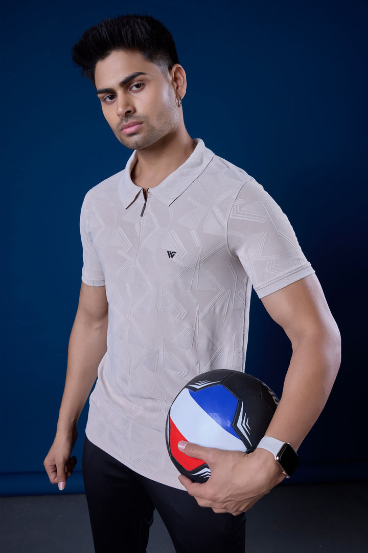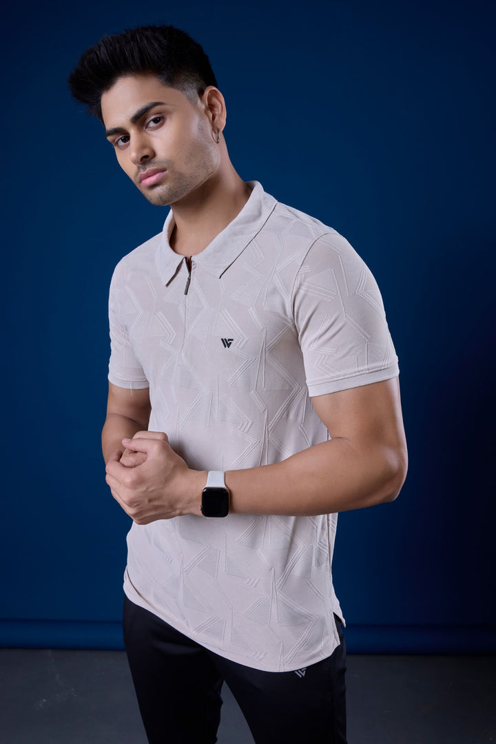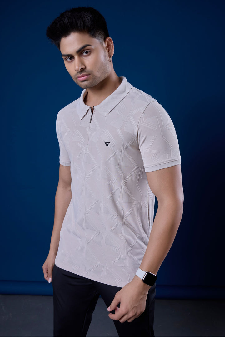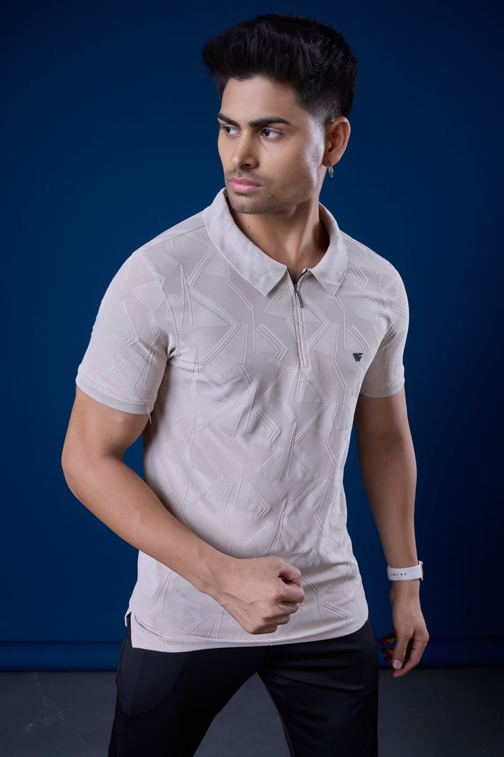 Step up your style with the Jacquard Graphic Zip Polo T-Shirt, where premium texture meets modern design.