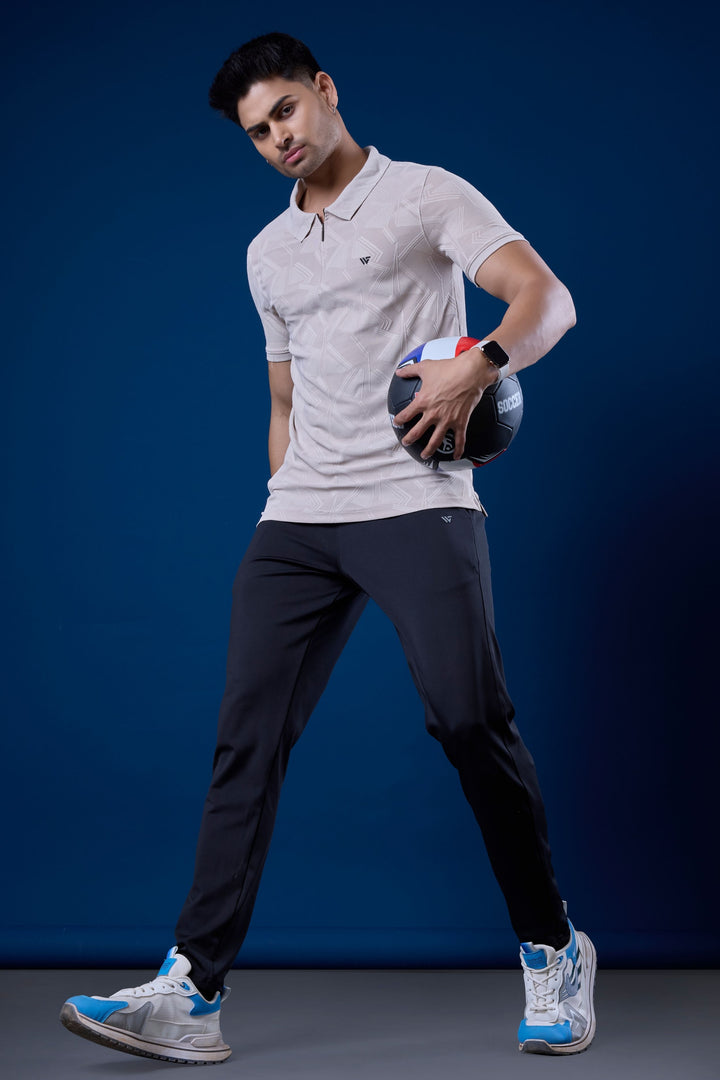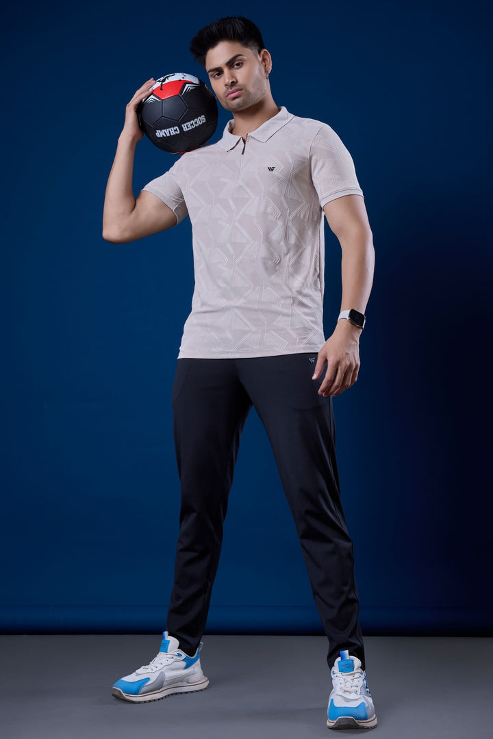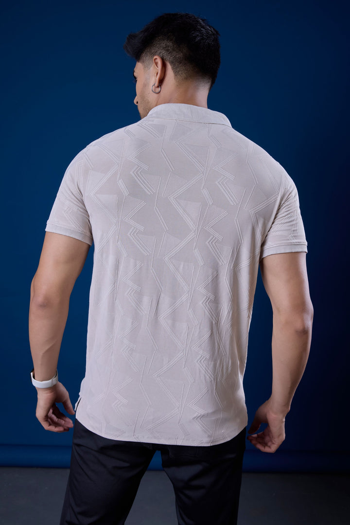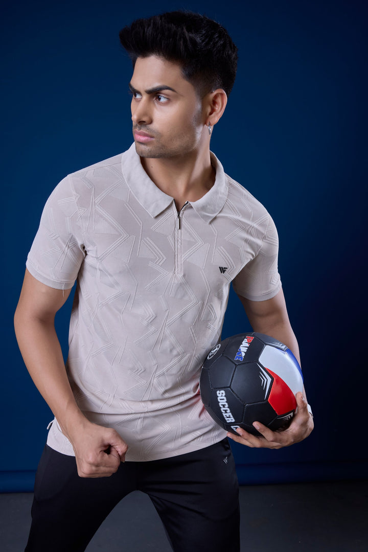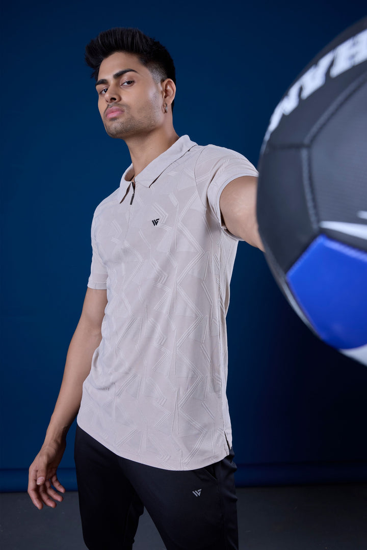 Step up your style with the Jacquard Graphic Zip Polo T-Shirt, where premium texture meets modern design.