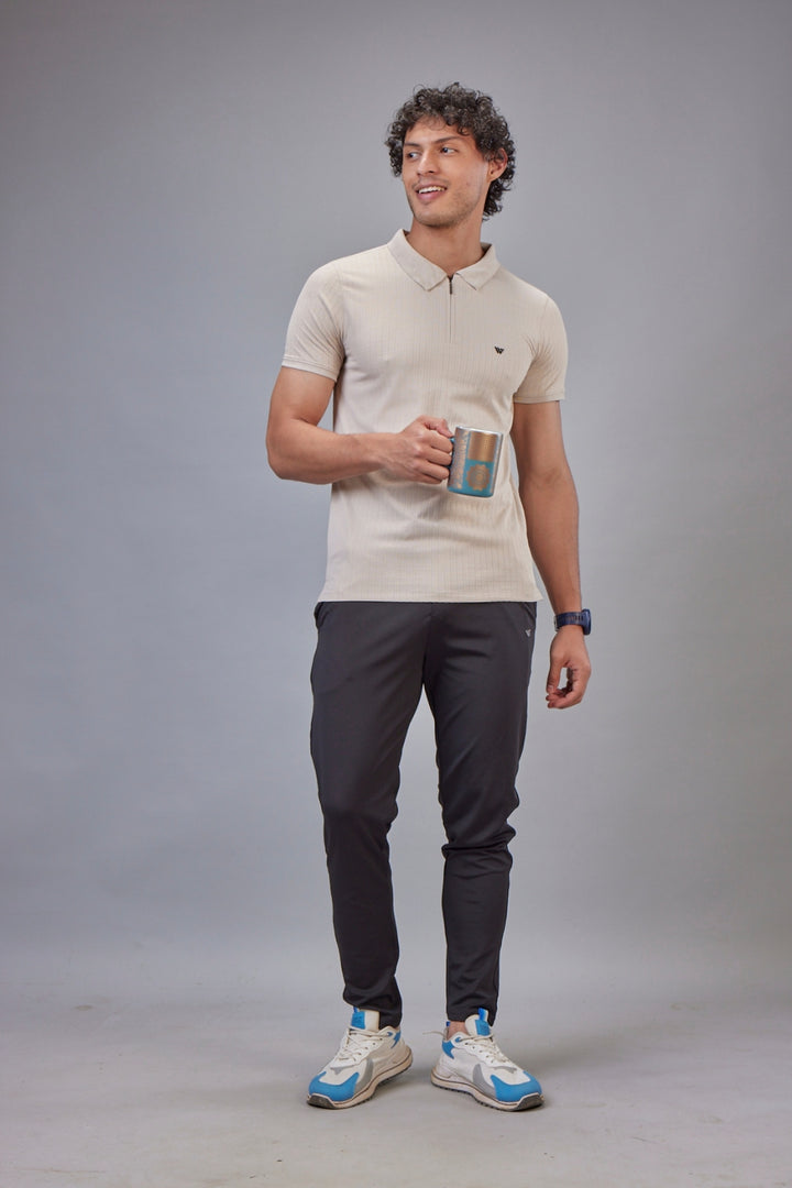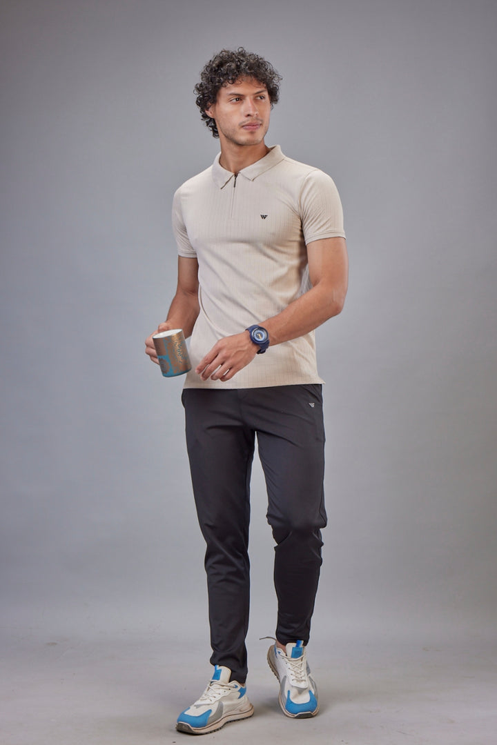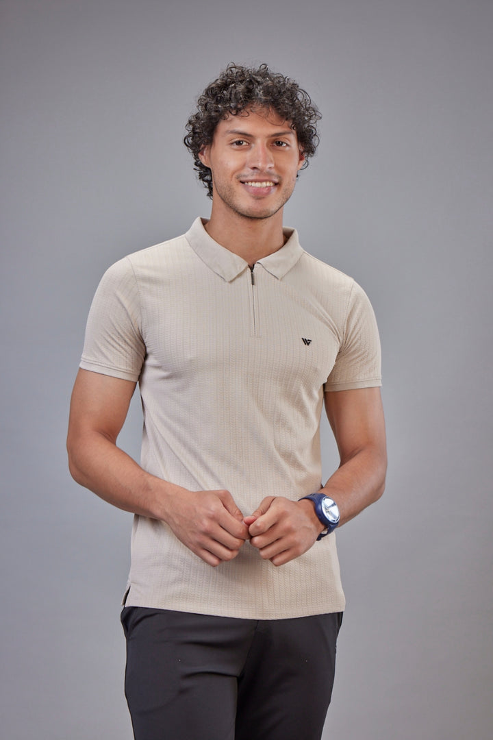 Crafted in Premium Jacquard Fabric, this Ribbed Zip Polo redefines everyday elegance with a textured finish that adds depth and sophistication. The ribbed jacquard pattern gives it a refined edge, while the zip-up placket and tailored fit keep it sharp yet versatile. Designed for all-day comfort, it seamlessly balances casual ease with a touch of modern polish.