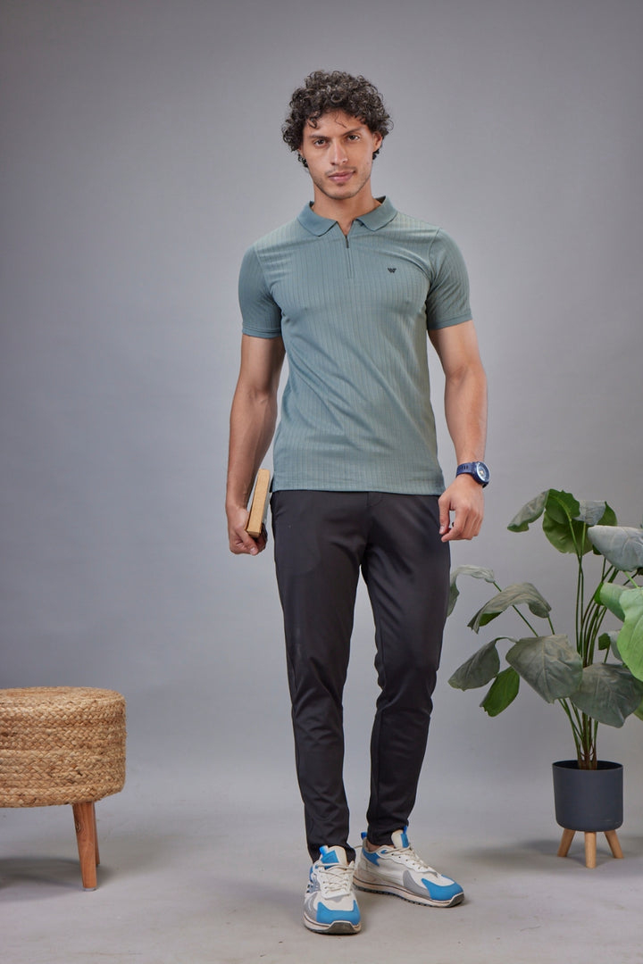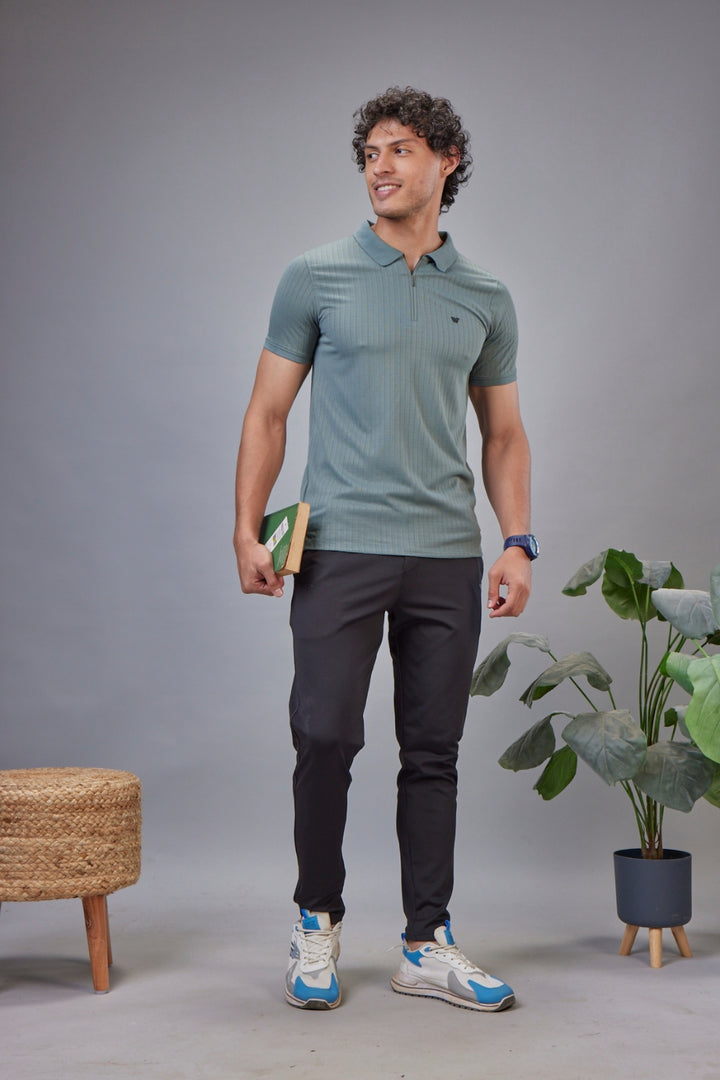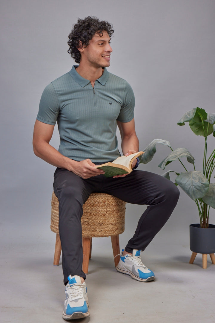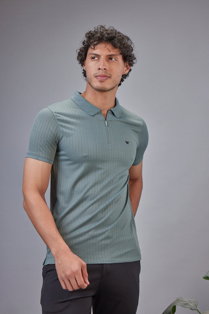 Crafted in Premium Jacquard Fabric, this Ribbed Zip Polo redefines everyday elegance with a textured finish that adds depth and sophistication. The ribbed jacquard pattern gives it a refined edge, while the zip-up placket and tailored fit keep it sharp yet versatile. Designed for all-day comfort, it seamlessly balances casual ease with a touch of modern polish.