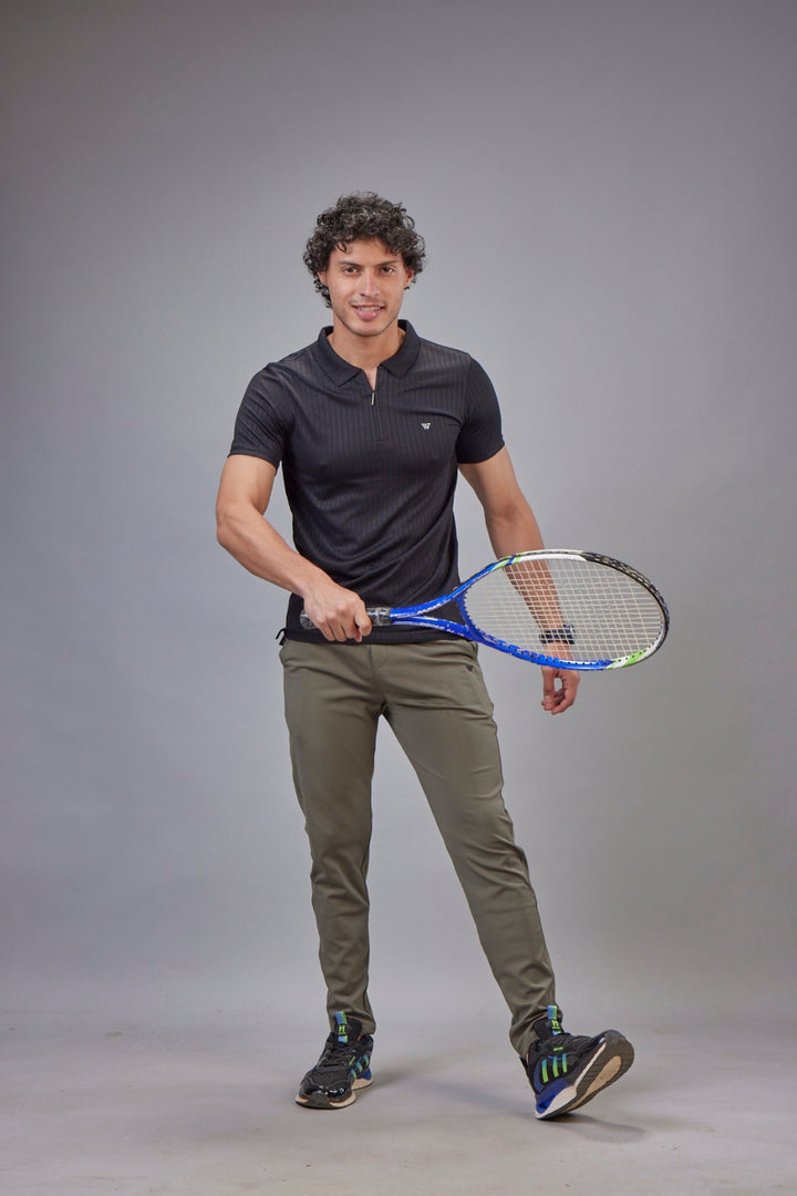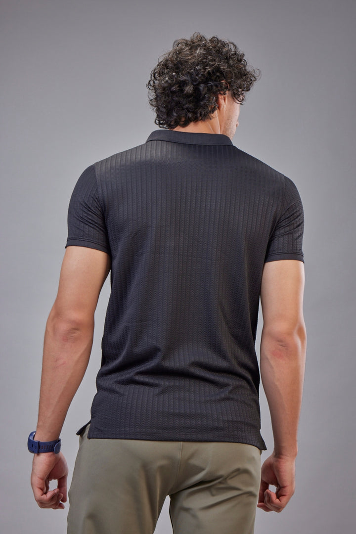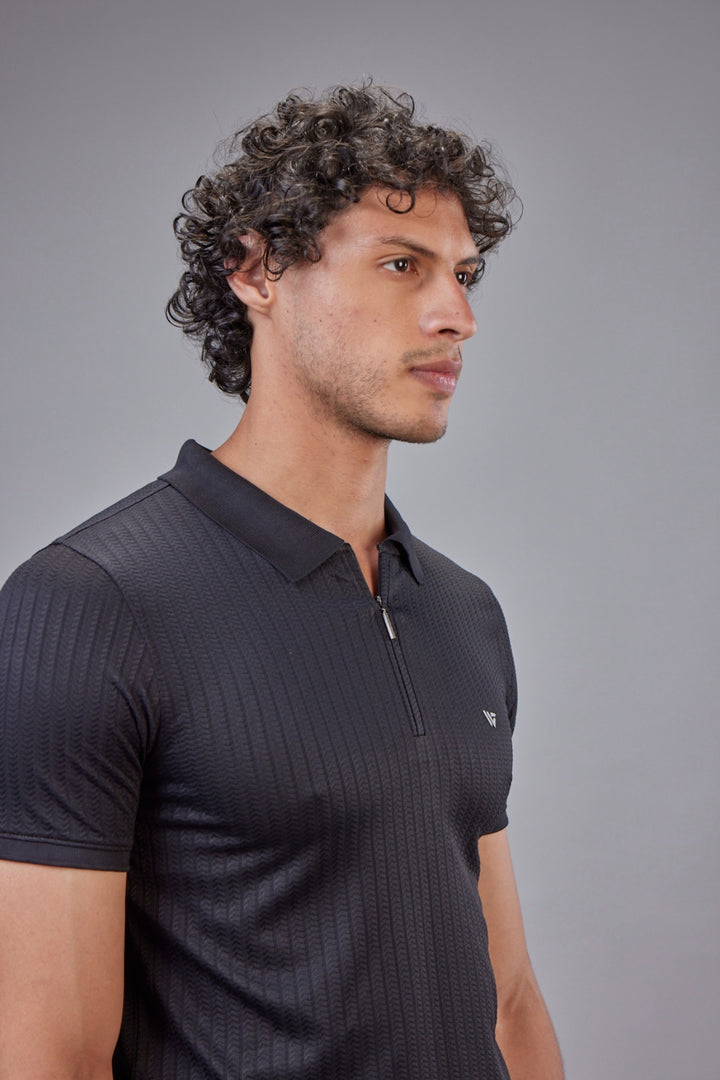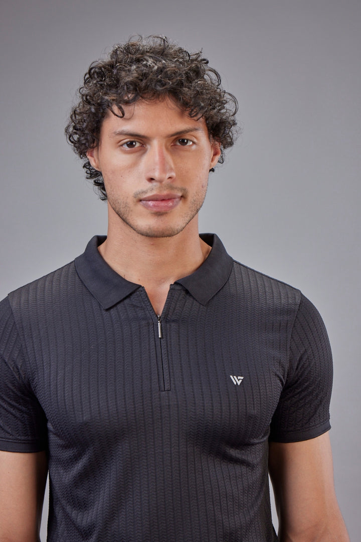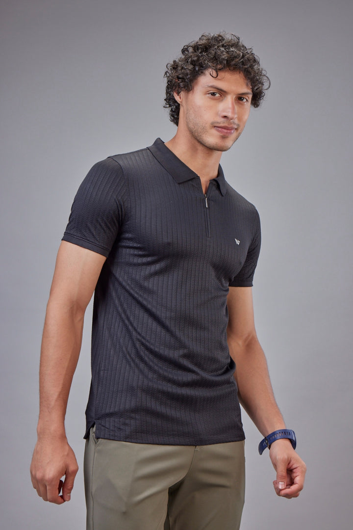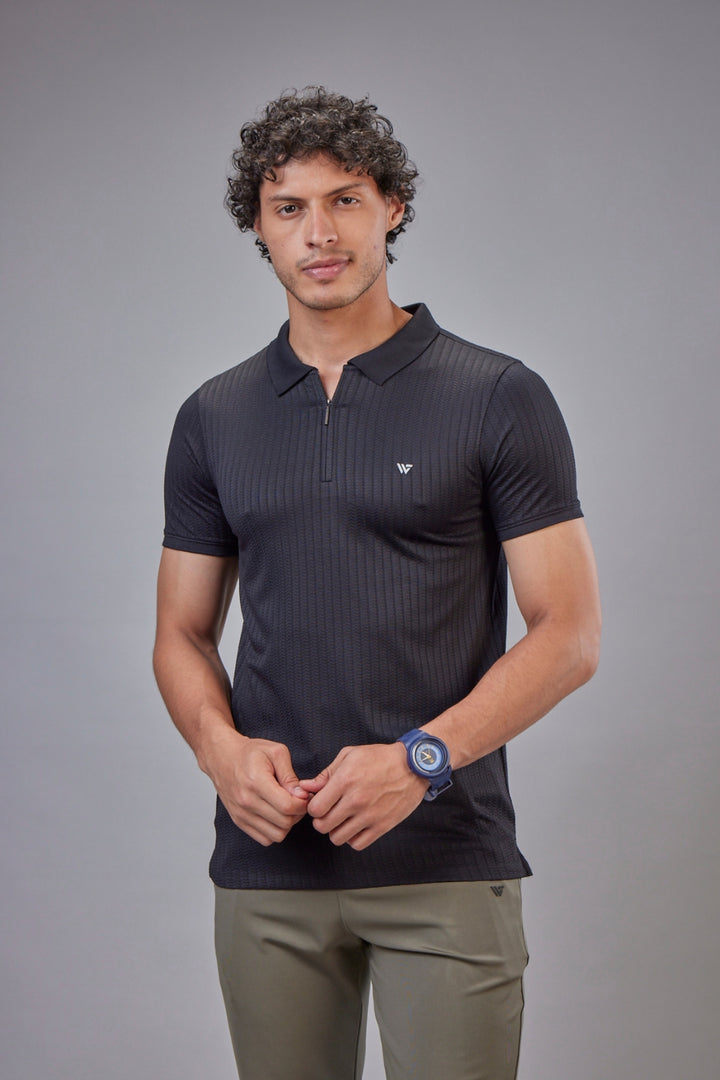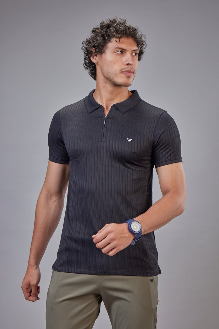 Crafted in Premium Jacquard Fabric, this Ribbed Zip Polo redefines everyday elegance with a textured finish that adds depth and sophistication. The ribbed jacquard pattern gives it a refined edge, while the zip-up placket and tailored fit keep it sharp yet versatile. Designed for all-day comfort, it seamlessly balances casual ease with a touch of modern polish.